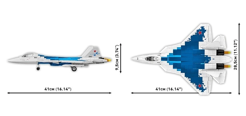 Il set non richiede colla né verniciatura: si costruisce e si espone subito. Grazie al supporto con targhetta SU-57 e alla minifigure del pilota inclusa, il modello è perfetto sia sullo scaffale sia per scene di gioco dinamiche.