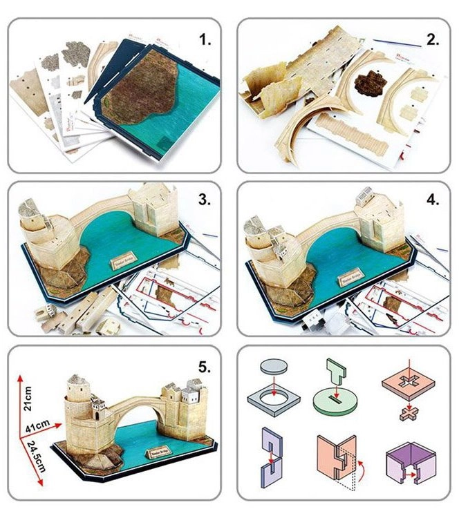 Scopri il fascino della Bosnia ed Erzegovina con il puzzle 3D dell’iconico ponte ad arco di Mostar. Il modello è realizzato in schiuma da 3 mm rivestita con carta stampata laminata, garantendo resistenza, aspetto realistico e incastri precisi. I pezzi sono pretagliati e si staccano facilmente – senza necessità di colla né forbici.