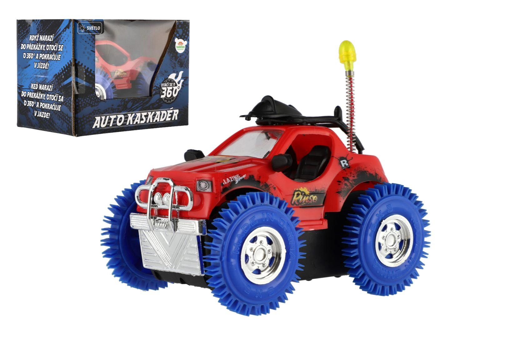 Fantastica auto acrobatica per piccoli piloti che, in caso di urto, esegue una rotazione di 360° e continua a correre. Offre effetti luminosi e sonori, una struttura in plastica resistente e ruote robuste per eccellenti prestazioni di guida. Alimentata da 3× batterie AA. Adatta ai bambini a partire da 3 anni.