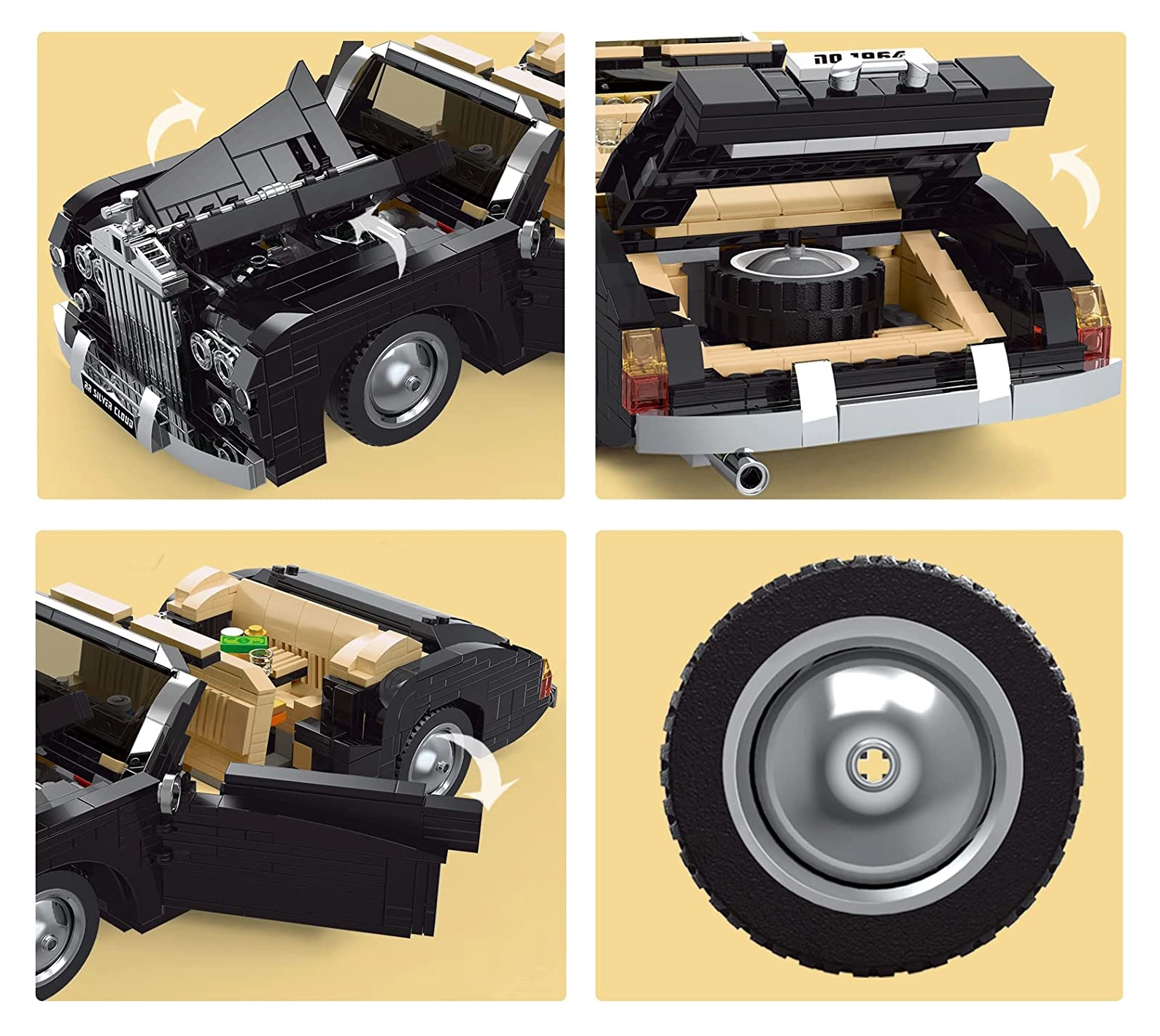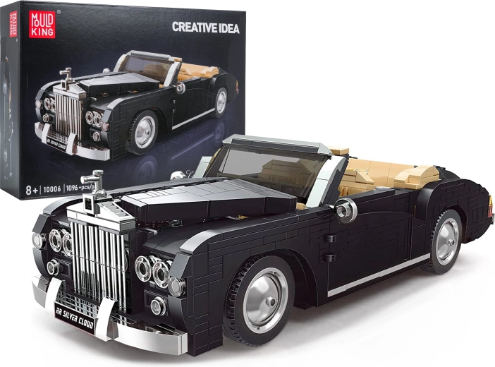 Questo raffinato modello di classico cabriolet si distingue per i dettagli cromati, gli interni autentici e la carrozzeria modellata con precisione. Il set offre un'ottima esperienza sia di costruzione che di esposizione: l'auto può muoversi sulle ruote, si possono aprire porte, cofano e bagagliaio e ammirare la soluzione ben studiata del cockpit.