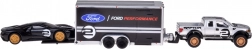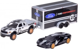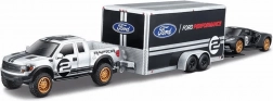 Scopri il set Maisto 1:64 realizzato con precisione: il FORD Raptor argento con cerchi bronzo traina un rimorchio chiuso nero “Ford Performance”, mentre il FORD GT Heritage nero con numero 2 e cerchi dorati attende il carico. Grazie alle carrozzerie in metallo, alle ruote liberamente rotanti e ai dettagli realistici, i modelli risultano fedeli e sono ottimi sia per giocare che per esporre.