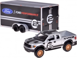 Il rimorchio ha una rampa posteriore apribile per facilitare la salita del veicolo ed è removibile. Il gancio di traino del Raptor amplia le possibilità di gioco e aggiunge realismo. Il set è una scelta perfetta per collezionisti e bambini che amano le icone automobilistiche e gli scenari di trasporto.