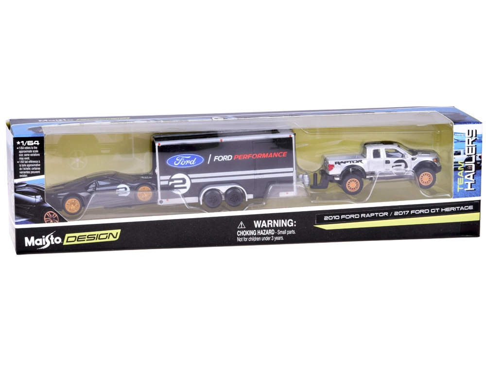 Elegante set da collezione di Maisto in scala 1:64 che unisce il robusto FORD Raptor con rimorchio staccabile e l’iconica auto da corsa FORD GT Heritage. I modelli hanno carrozzeria in metallo, pneumatici in gomma e stampe dettagliate. Ideale sia per la collezione che per il gioco: il rimorchio ha una rampa funzionante e il Raptor un gancio di traino per un trasporto realistico. Struttura in metallo, pneumatici in gomma, rimorchio funzionale con rampa e design con licenza dettagliato faranno felice ogni appassionato di auto.