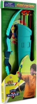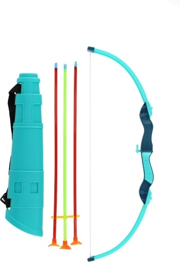 Il set include un arco turchese, una faretra con tracolla regolabile e tre frecce colorate con ventosa per aderire facilmente alle superfici lisce. Dalla confezione si può ritagliare un bersaglio (circa 19 cm), così la gara al miglior centro può iniziare subito dopo l’apertura.