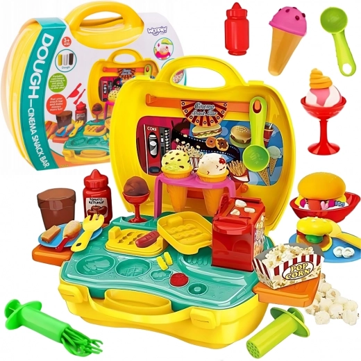 Il set per bambini del marchio WOOPIE trasforma il gioco in uno snack bar in un’avventura divertente. Nella valigetta compatta trovi una ricca dotazione di accessori, pasta da modellare morbida e atossica e stampi per popcorn, patatine fritte, hot dog, hamburger e gelato. Grazie alla facilità d’uso e ai materiali sicuri sviluppa creatività, motricità fine e fantasia dei bambini dai 3 anni.