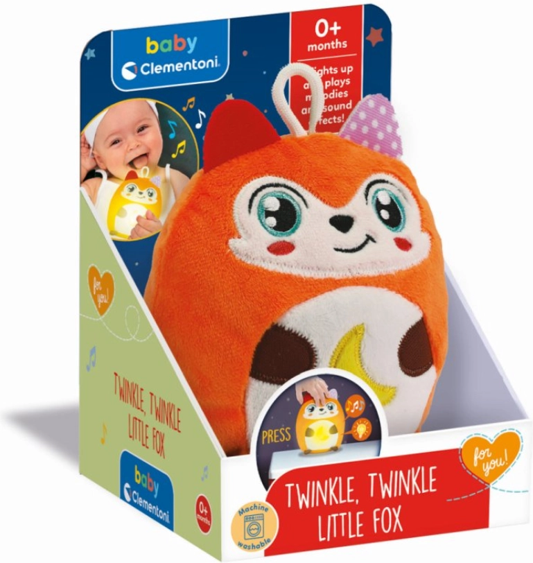 La volpicina interattiva CLEMENTONI BABY Twinkle Twinkle porta ai bambini tranquillità e gioia. Una luce soffusa e melodie piacevoli favoriscono il benessere emotivo, mentre il materiale morbido e piacevole al tatto stimola la percezione sensoriale. È perfetta per la nanna, le coccole e le prime scoperte del mondo.