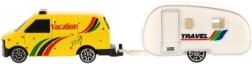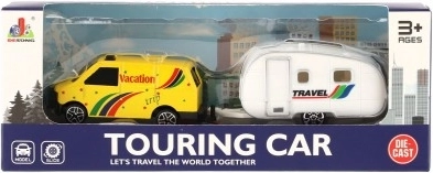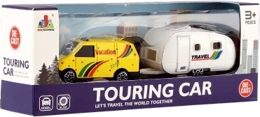 L'auto con mini caravan è dettagliatamente progettata per stimolare l'interesse per il viaggio e l'avventura.