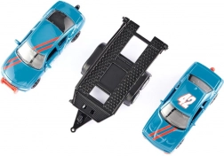 Il rimorchio a doppio asse dispone di un piano di carico inclinabile per caricare e scaricare facilmente la DODGE Challenger SRT da corsa.