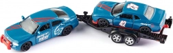 Con questo set dettagliato in scala 1:55 di Siku proverai l’emozione delle gare già all’arrivo ai box. Il DODGE Charger trainante trasporta in sicurezza la DODGE Challenger SRT da corsa sul rimorchio con rampa ribaltabile, rendendo carico e scarico un gioco da ragazzi. Le parti in metallo e plastica assicurano stabilità, lunga durata e un aspetto eccellente.