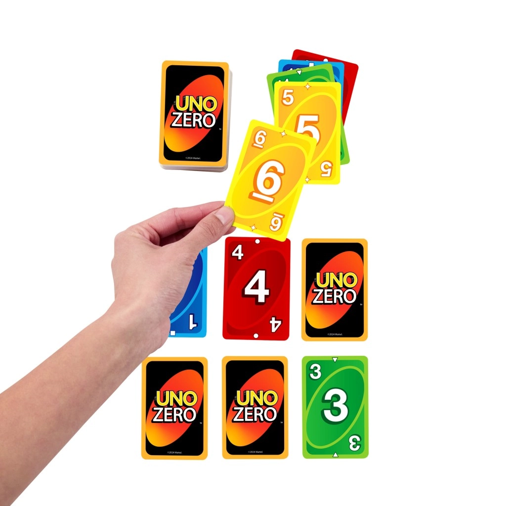 Scopri il divertente e frizzante gioco di carte UNO Zero, che porta nuovi elementi strategici, ritmo di gioco veloce e regole semplici per tutta la famiglia. Scambia le carte nella griglia in base al colore o al numero, riduci il punteggio e sfrutta le carte azione speciali per ribaltare l’andamento della partita a tuo favore.
