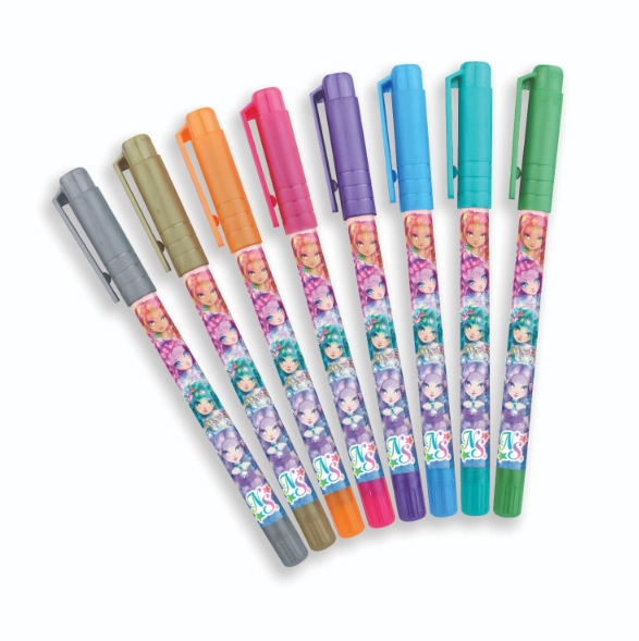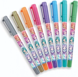 - 9 penne gel glitter, 8 penne metalliche, 8 penne neon, 1 penna gel nera