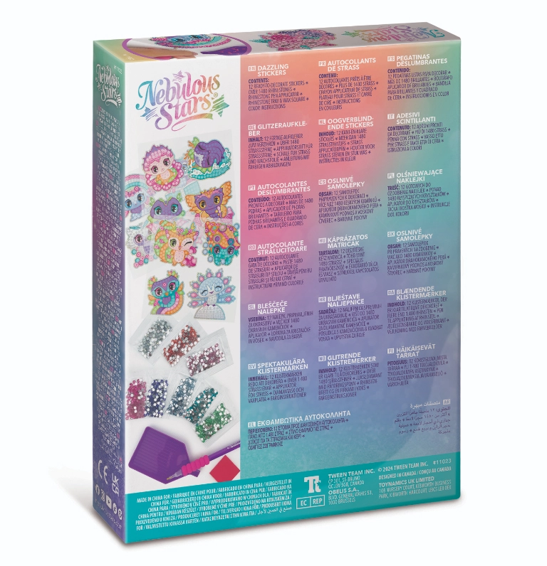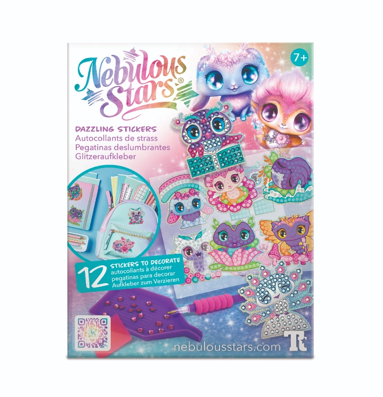 Crea la tua collezione di adesivi con effetto scintillante. Questo set creativo NEBULOUS STARS contiene tutto il necessario per decorare – dall’applicatore a migliaia di strass. Ideale per sviluppare fantasia, motricità fine e il piacere della creazione. Include 12 adesivi, 1480 strass e un applicatore per una decorazione facile.