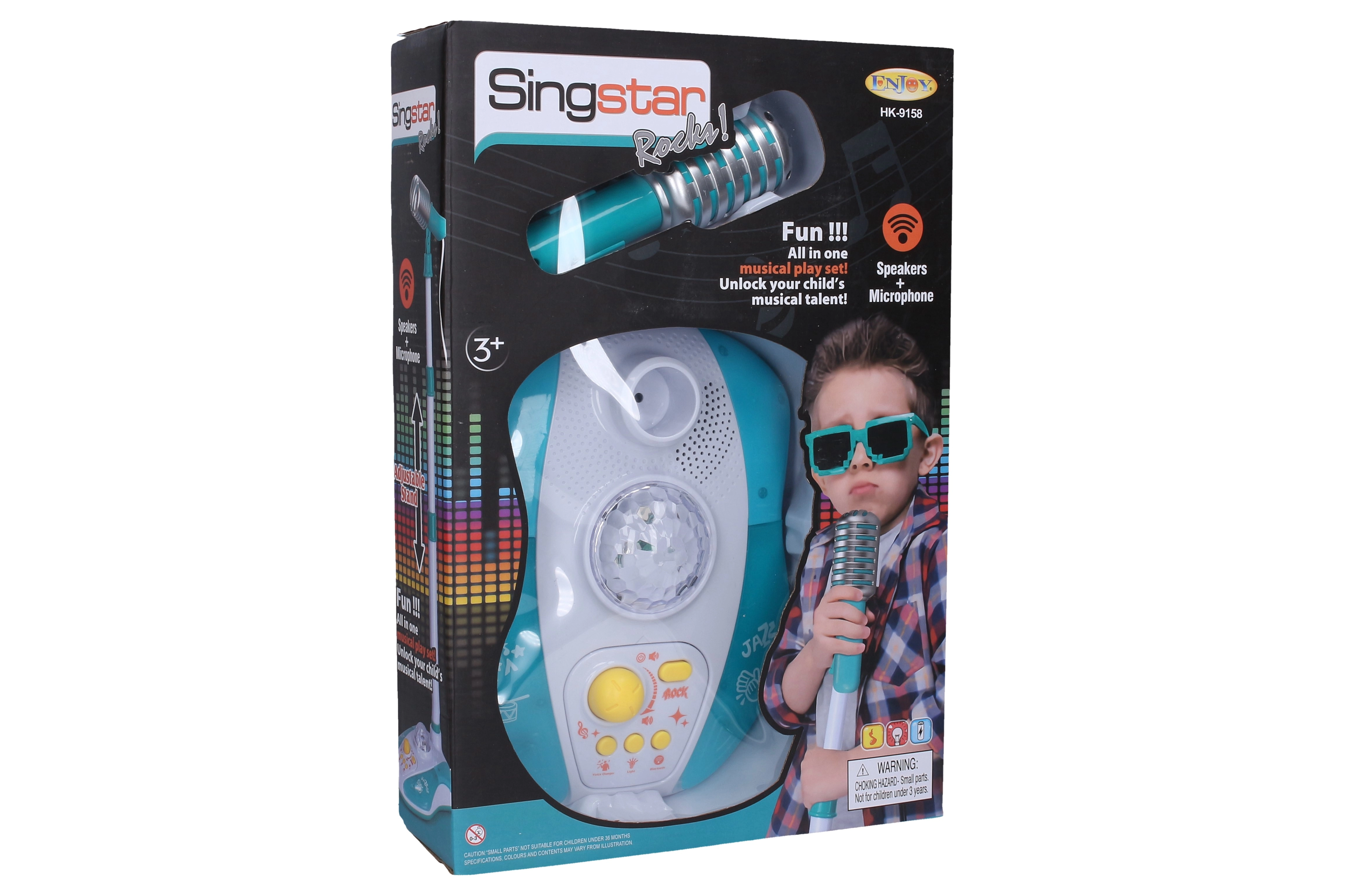 Questo microfono per bambini con supporto è ideale per piccoli cantanti e performer. Grazie al Bluetooth puoi riprodurre i brani preferiti direttamente dallo smartphone, mentre 9 effetti luminosi creano la giusta atmosfera da palcoscenico. L'altezza regolabile del supporto garantisce un uso confortevole per bambini di età diverse.