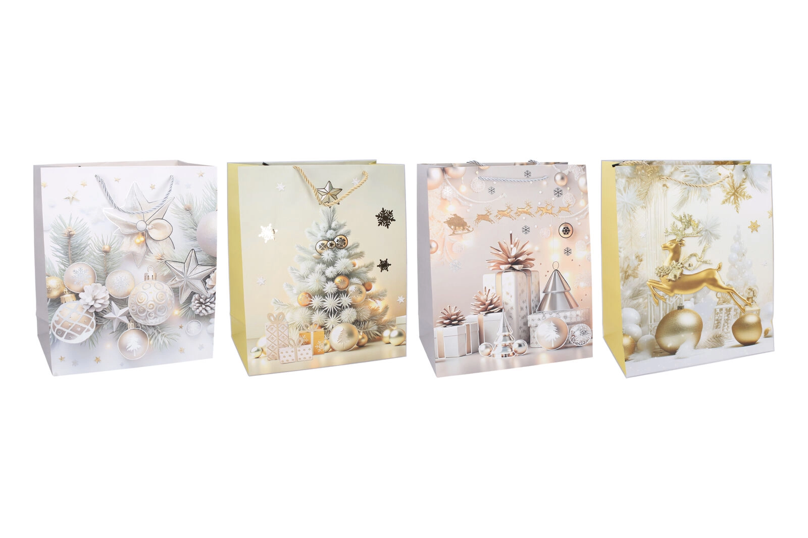 Elegante borsa regalo in formato L per un confezionamento festivo e gioioso. Ideale per regali da medi a più grandi, con motivi natalizi per un’atmosfera perfetta. Disponibile in 4 varianti, con pratiche dimensioni 31 × 40 × 12 cm e struttura resistente per un trasporto sicuro.