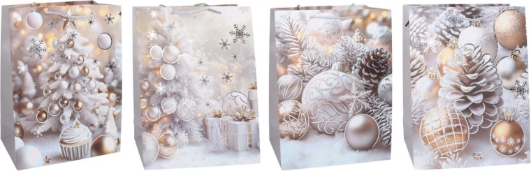 Elegante busta regalo di Natale in taglia S con dimensioni 18 × 24 × 8,5 cm, ideale per regali piccoli. Offre 4 motivi accattivanti, struttura robusta ed aspetto raffinato per un incarto festivo impeccabile.