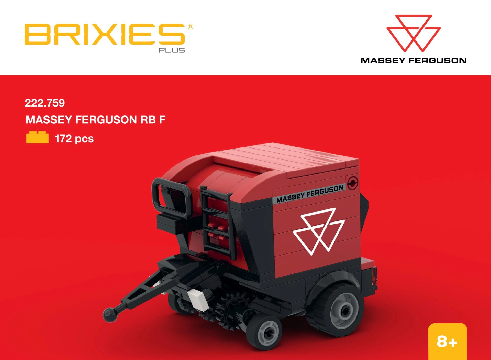 Scopri divertimento e creatività con il set BRIXIES Plus e assembla l’iconica pressa per balle rotonde MASSEY FERGUSON RB F. Grazie ai pezzi più grandi, il modello è facile da maneggiare, adatto ai costruttori più giovani e apprezzato anche dagli appassionati esperti di macchine agricole.