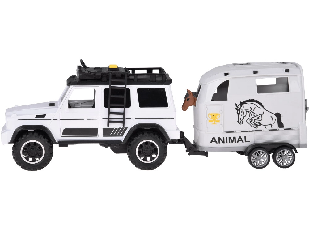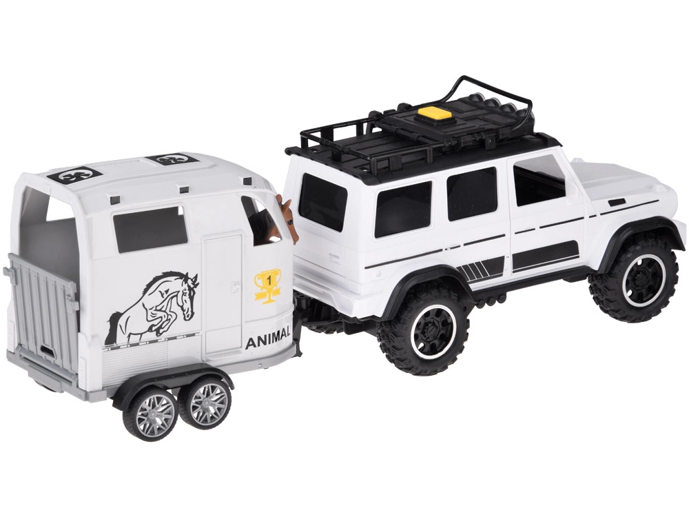- Set di giocattoli: fuoristrada + rimorchio per cavalli + figurina di cavallo