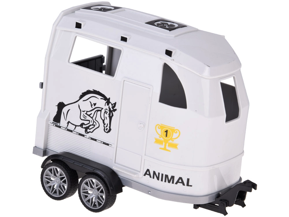 Il rimorchio per cavalli ha finestre, una grafica con cavallo e soprattutto una rampa posteriore apribile per caricare e scaricare facilmente la figurina. Grazie al gancio staccabile, il rimorchio si può collegare o scollegare con facilità, ampliando gli scenari di gioco: dalla fattoria alle gare di equitazione.