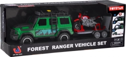 Set avventuroso per piccoli conducenti: fuoristrada verde con rimorchio–piattaforma staccabile e moto sportiva rossa. L’auto offre effetti luminosi e sonori, porte apribili e ruote in gomma per una guida fluida. Il rimorchio ha una rampa posteriore ribaltabile per un facile carico e un trasporto sicuro della moto. Ideale per il gioco creativo e il trasporto di altri giocattoli preferiti.