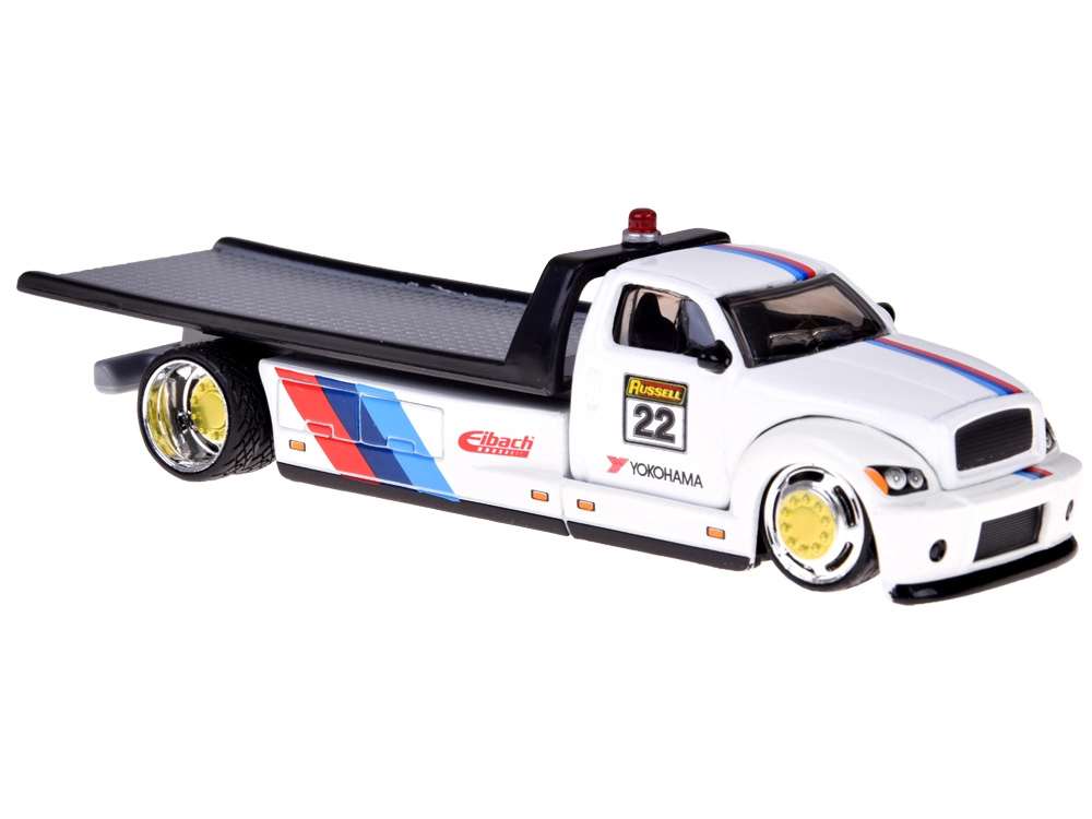 Le carrozzerie sono realizzate in metallo, i telai in plastica: una combinazione che garantisce resistenza, peso contenuto e dettagli fedeli. La rampa funzionale del carro attrezzi consente un carico e trasporto agevoli dell’auto da corsa, offrendo molti scenari di gioco.