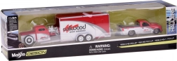 Elegante set da collezione in scala 1:64 con l’iconico CHEVROLET 454 SS Pick-up 1993 e il classico CHEVROLET Pick-up 1936 su rimorchio da trasporto. I modelli in livrea rosso-bianca hanno carrozzeria in metallo, ruote in gomma per una marcia fluida e decals dettagliate. Il Pick-up 454 SS è dotato di gancio di traino rimovibile, il rimorchio si aggancia e sgancia facilmente – ideale sia per il gioco che per l’esposizione.