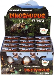 Immergi l’uovo in una ciotola d’acqua e osserva come, entro 24–48 ore, il guscio inizi ad aprirsi gradualmente. In circa 72 ore dall’uovo nascerà un piccolo dinosauro – sarà un T‑Rex, uno stegosauro, un brontosauro o un’altra specie? Ogni uovo nasconde una sorpresa, rendendolo un regalo ideale per i bambini.