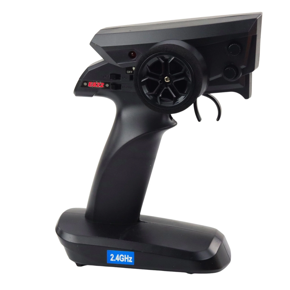 Sterzo e acceleratore proporzionali precisi, portata affidabile fino a 30 m senza interferenze grazie al trasmettitore a 2,4 GHz – ideale per guida tecnica e veloce.