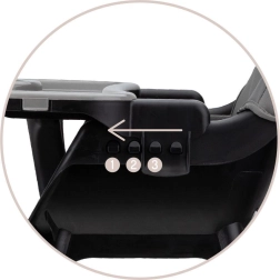 - Comfort e sicurezza: poggiapiedi, vassoio regolabile, cinture di sicurezza