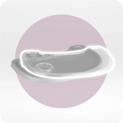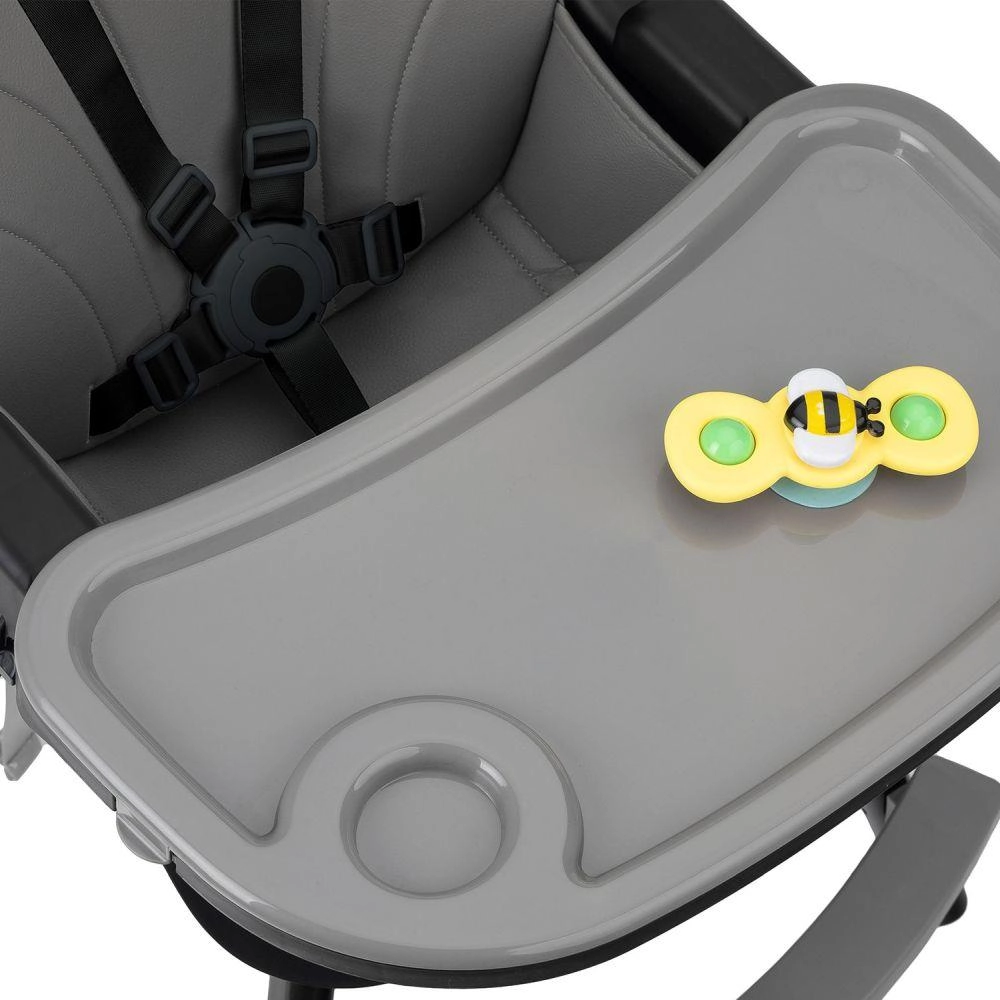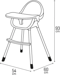 Il vassoio doppio, ben studiato, con portabicchiere è regolabile e la sua parte superiore può essere inserita in lavastoviglie. La struttura stabile con poggiapiedi e cinture di sicurezza garantisce comfort e protezione. Il design minimalista e i colori neutri si integrano facilmente in cucine e sale da pranzo moderne.