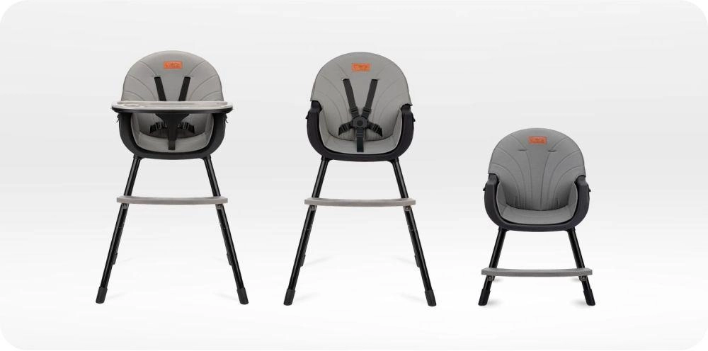 Usalo come seggiolone alto con vassoio, seggiolina da tavolo oppure seduta bassa per giocare. Una sedia, tre soluzioni pratiche per ogni casa.