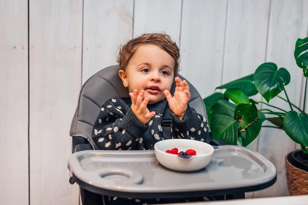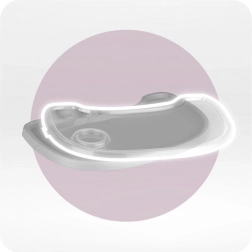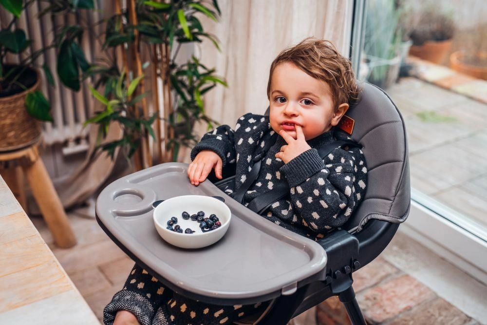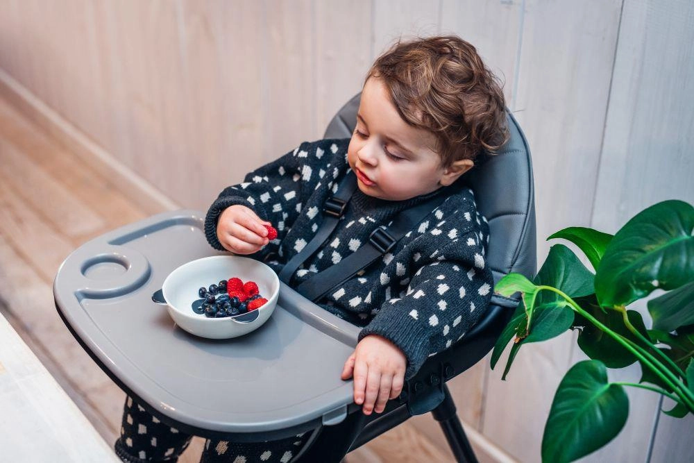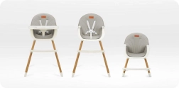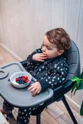 Un’unica sedia per tutto il periodo dallo svezzamento all’età prescolare: con vassoio per le prime pappe, senza vassoio al tavolo e come sedia bassa per gioco e creatività.