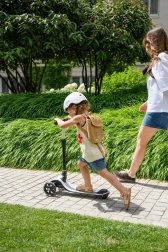 Due ruote anteriori e una posteriore garantiscono un’ottima stabilità e un facile mantenimento dell’equilibrio. La pedana antiscivolo e i morbidi grip aumentano la sicurezza a ogni corsa.