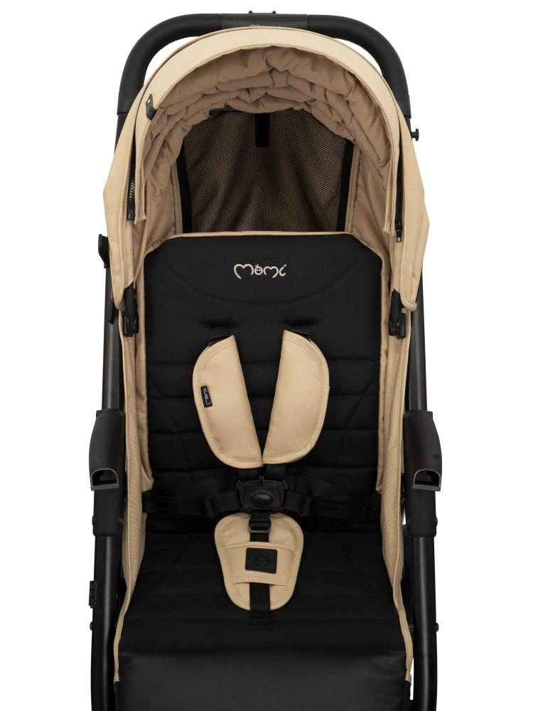 Il passeggino sportivo leggero e maneggevole MoMi Miya EVA nel raffinato colore beige offre chiusura rapida con una mano, grandi ruote EVA con sospensioni e un ricco set di accessori incluso (portabicchiere, zanzariera, coprigambe, parapioggia). Grazie alle cinture a 5 punti, al freno a pedale e al doppio blocco di chiusura garantisce una guida sicura e confortevole dalla nascita fino a 22 kg.