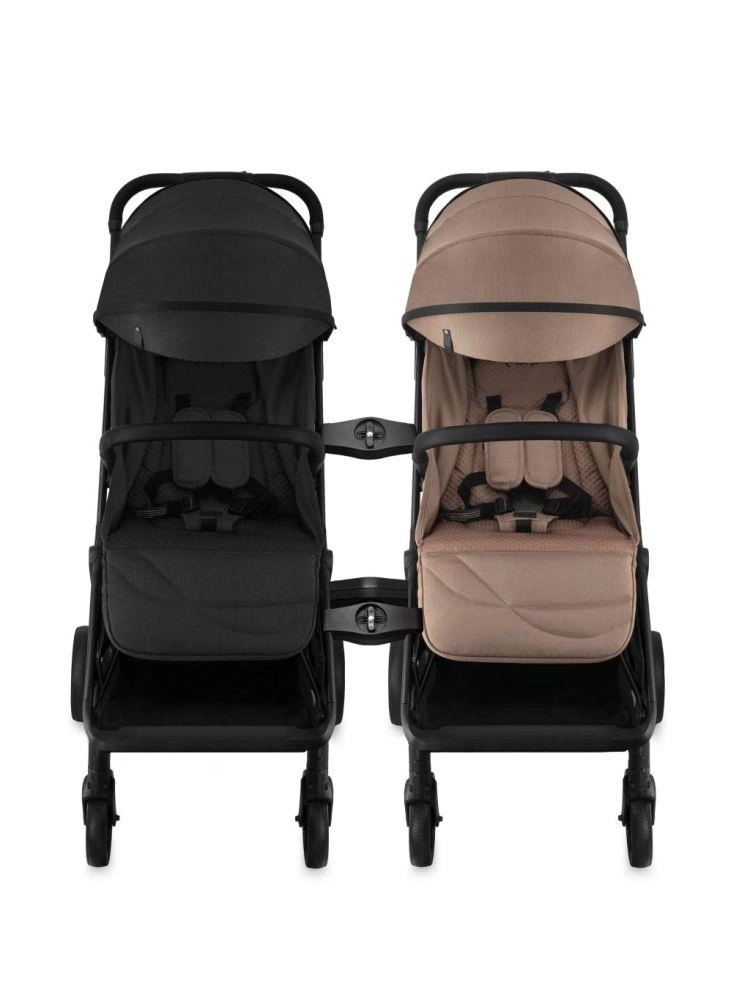 In dotazione trovi zaino per passeggino, portabicchiere, zanzariera e parapioggia. Un set opzionale di adattatori consente di unire due passeggini in una pratica soluzione per fratellini o gemelli.