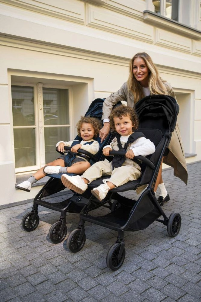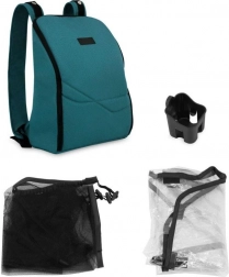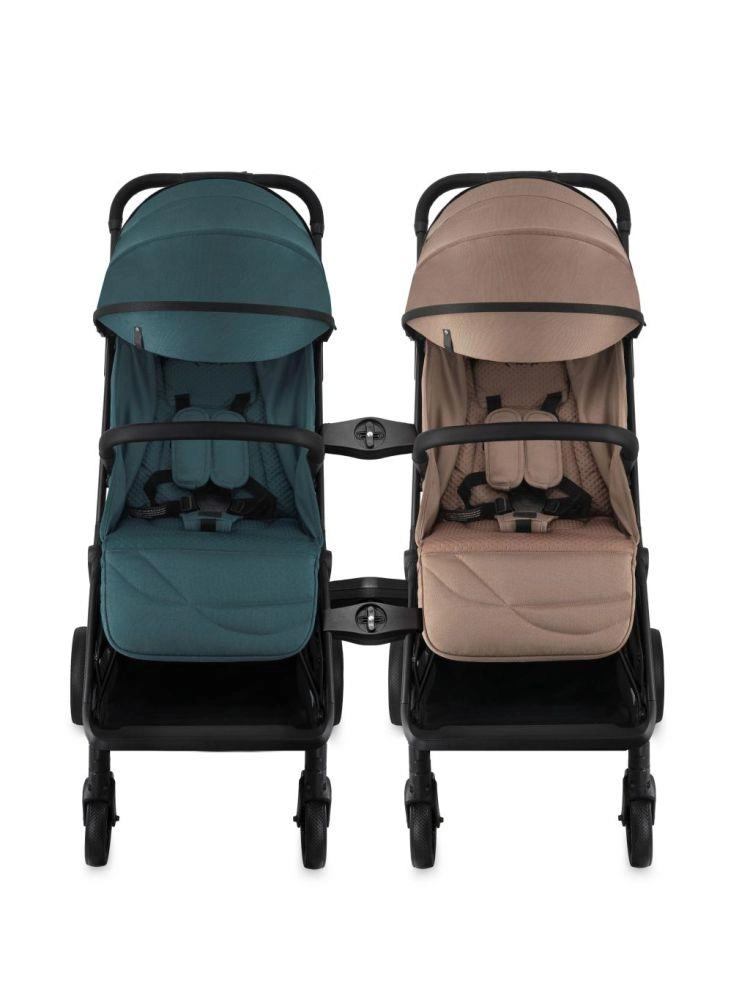 In dotazione ricevi tutto il necessario: elegante zaino per passeggino, portabibite, zanzariera e parapioggia. Un kit di adattatori opzionale consente di collegare due passeggini per una pratica soluzione fratellare/gemellare. Non mancano cinture di sicurezza a 5 punti e un capiente cestello con portata di 2 kg.