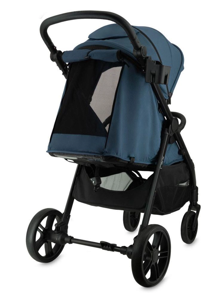 MoMi Clara è un passeggino sportivo affidabile per gli spostamenti quotidiani in città e al parco. Grazie a portata fino a 22 kg, seduta ampia e cinture a cinque punti è adatto anche a bimbi più grandi e prescolari. Tutte e quattro le ruote sono ammortizzate, le anteriori si possono bloccare e le gomme in EVA sono antiforatura: guida fluida e silenziosa garantita.
