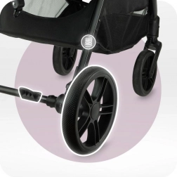 Le grandi ruote in EVA (anteriori 7", posteriori 10") sono resistenti alle forature e, insieme all’ammortizzazione di tutte e quattro le ruote, garantiscono comfort per bambino e genitore. Le ruote anteriori possono essere bloccate per una marcia stabile.
