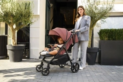 Seduta ampia con schienale e poggiagambe regolabili, capottina estensibile e maniglione regolabile in altezza permettono di adattare il passeggino alle necessità del momento in ogni uscita.