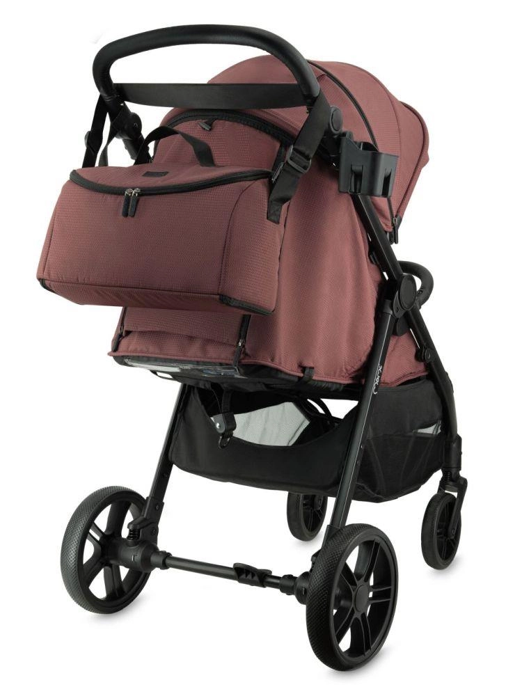 Borsa, coprigambe, parapioggia, portabibite, zanzariera e cinturino di sicurezza da polso. Tutto ciò che serve per passeggiate tutto l’anno senza compromessi.