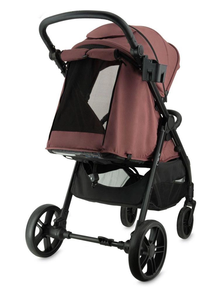 MoMi Clara è un passeggino sportivo affidabile pensato per il comfort di bambino e genitori. Le grandi ruote in EVA resistenti alle forature e l’ammortizzazione di tutte e quattro le ruote assicurano una marcia fluida su marciapiedi e sterrati leggeri, mentre le ruote anteriori bloccabili aiutano a mantenere la direzione. La seduta spaziosa e confortevole con schienale e poggiagambe regolabili è abbinata a una capottina estensibile con protezione solare.