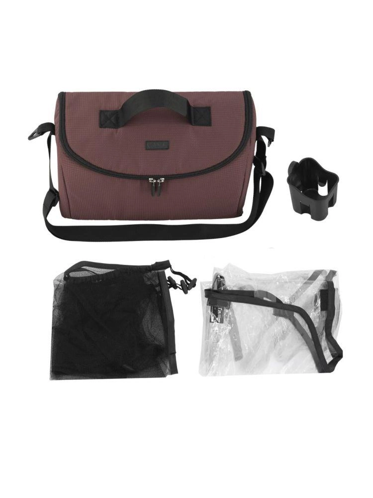 La confezione include tutto il necessario per viaggiare comodi: borsa, coprigambe, parapioggia, portabibite, zanzariera e cinturino di sicurezza da polso. Adatto ai bambini da 6 mesi, conforme alle norme EN 1888-1 e EN 1888-2.