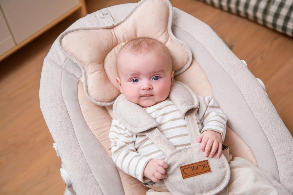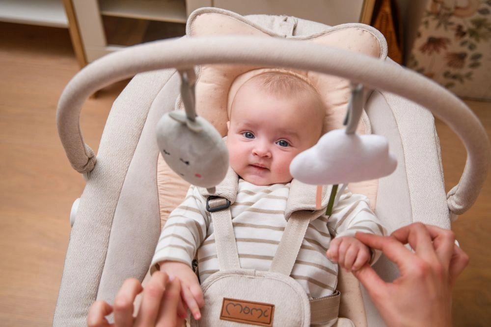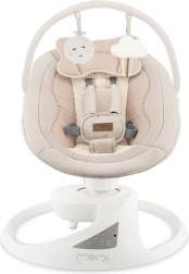 L’altalena MoMi PEARL è un aiuto moderno per i genitori che combina movimento rilassante, musica e comfort in un unico prodotto. Grazie a due modalità di dondolio e alla seduta girevole a 360° puoi adattare facilmente posizione e intensità del dondolio alle esigenze del tuo bebè. L’imbottitura morbida, la cintura di sicurezza a 5 punti e lo schienale regolabile garantiscono sicurezza e comfort nell’uso quotidiano.