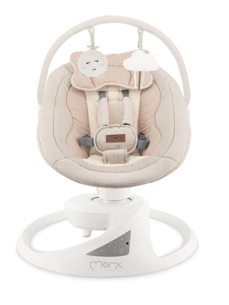 La premium altalena elettrica MoMi PEARL offre 2 modalità di dondolio (da lato a lato e delicato movimento rotatorio), seduta girevole a 360°, 5 velocità, timer e Bluetooth per la riproduzione musicale. Una soluzione comoda, sicura e stilosa per calmare e intrattenere il bebè dalla nascita fino a 9 kg.