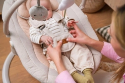 Scegli tra il dondolio laterale e il delicato movimento rotatorio. Le cinque velocità si adattano facilmente all’umore e alle esigenze del tuo bebè.