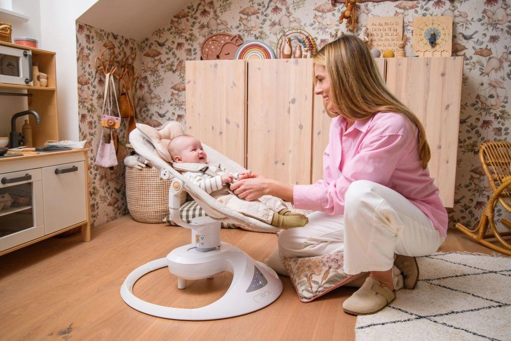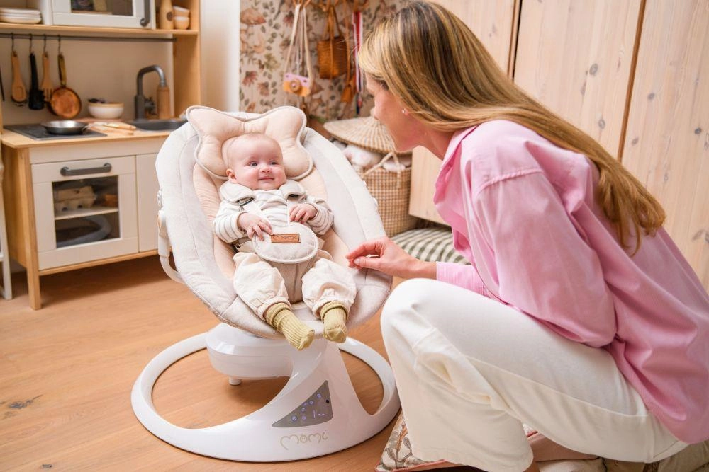 L’altalena MoMi PEARL unisce design moderno, comfort e funzioni smart per il relax del tuo bambino lasciandoti le mani libere. Il sedile girevole a 360° garantisce l’inclinazione ideale e il contatto con il genitore, mentre due modalità di dondolio con cinque velocità favoriscono relax e sonno. Il timer integrato (8/15/30 min) risparmia energia e offre una pratica modalità automatica.