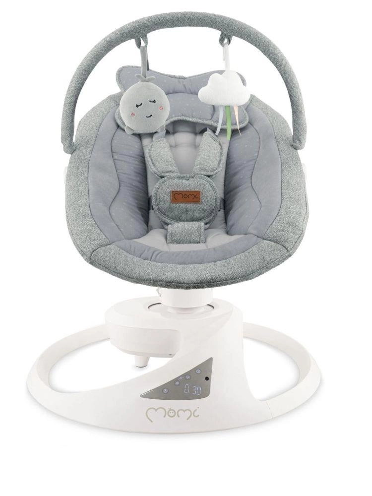 La premiata altalena elettrica MoMi PEARL calma e intrattiene il tuo bebè grazie a 2 modalità di dondolio (da un lato all’altro e delicato movimento rotatorio), al sedile girevole a 360°, a 5 velocità e al timer. Per ancora più comfort e stimoli non mancano Bluetooth, melodie e suoni della natura, oltre alla giostrina con giochini e una sicura cintura a 5 punti.