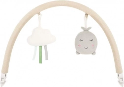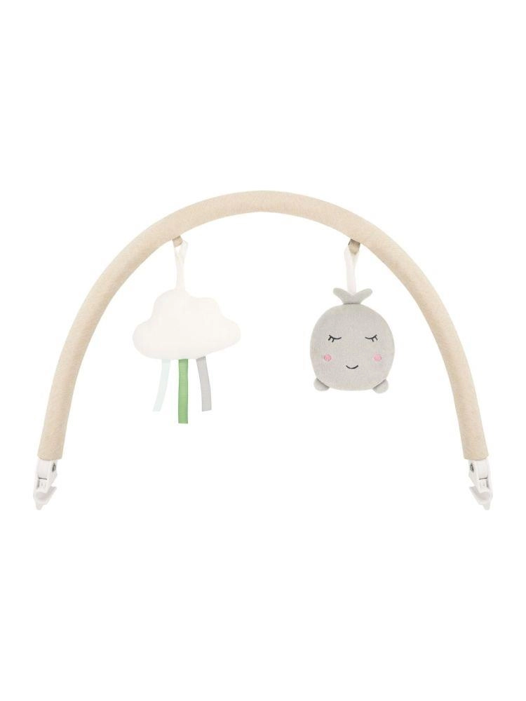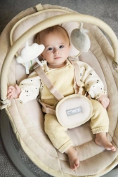 Cinture a cinque punti, morbido cuscinetto e piedini antiscivolo mantengono il bebè al sicuro e comodo. La giostrina con due giochini stimola lo sviluppo sensoriale.