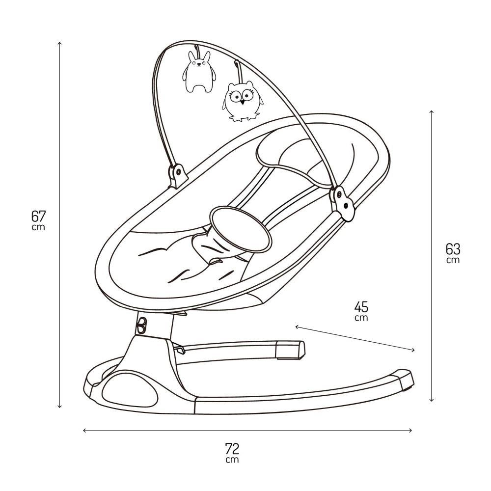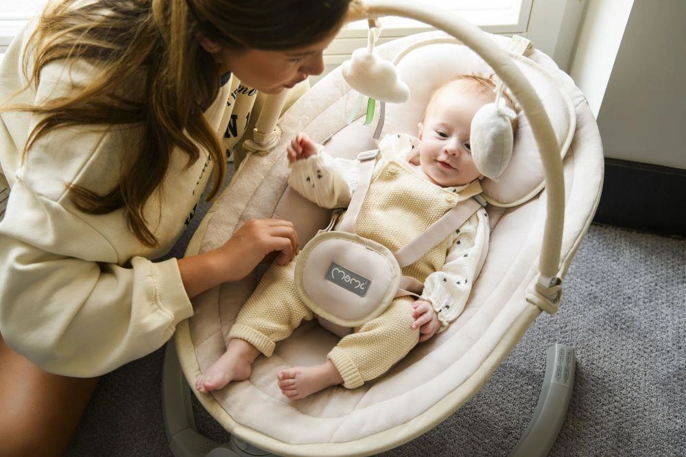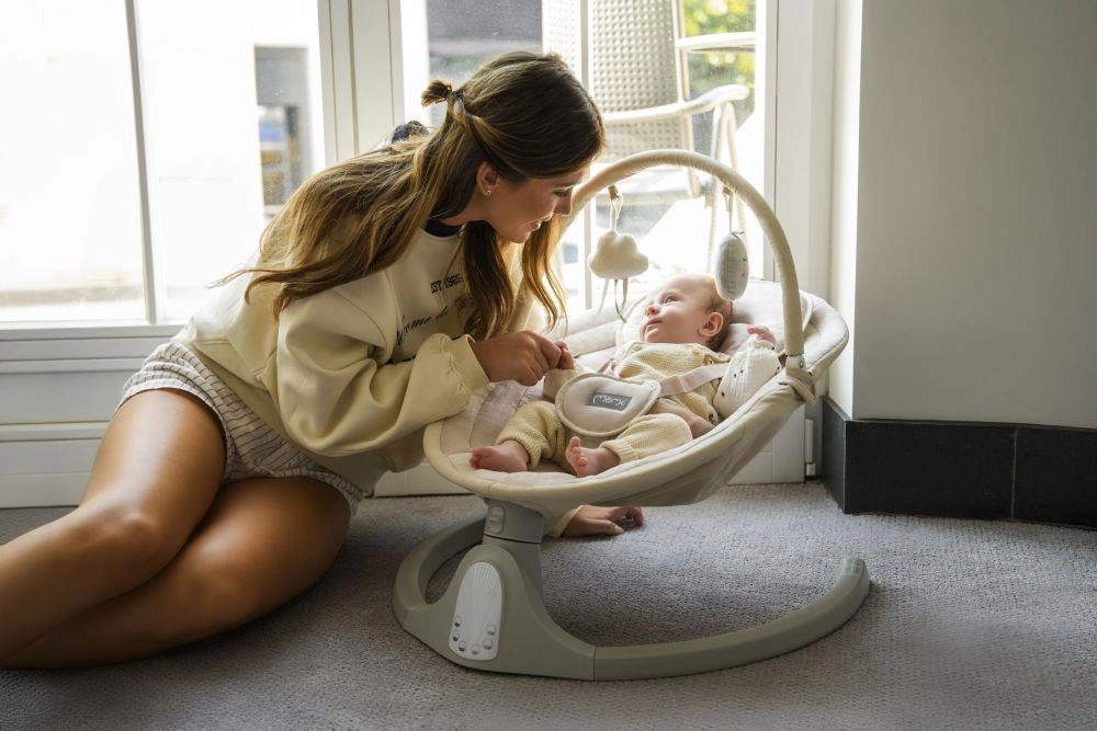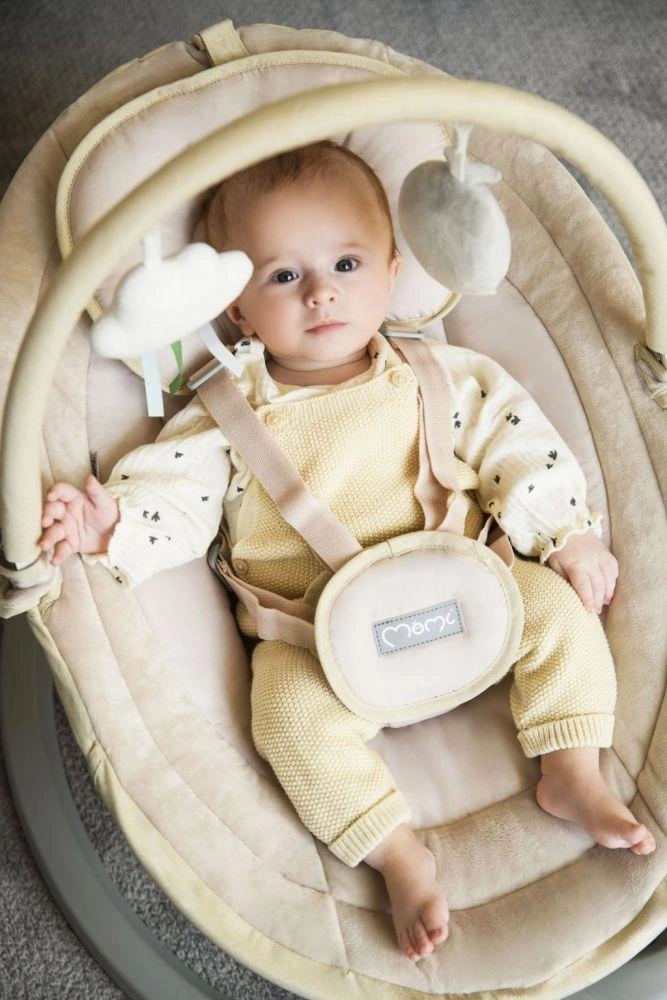 MoMi Kenani è un’elegante e stabile altalena elettrica per bambini fin dalla nascita. Grazie alla struttura leggera in alluminio e acciaio, alla morbida imbottitura e al poggiatesta ergonomico, offre un ambiente sicuro e confortevole. Il controllo è intuitivo tramite un chiaro pannello LCD o telecomando, così puoi regolare modalità e volume senza disturbare il sonno del piccolo.