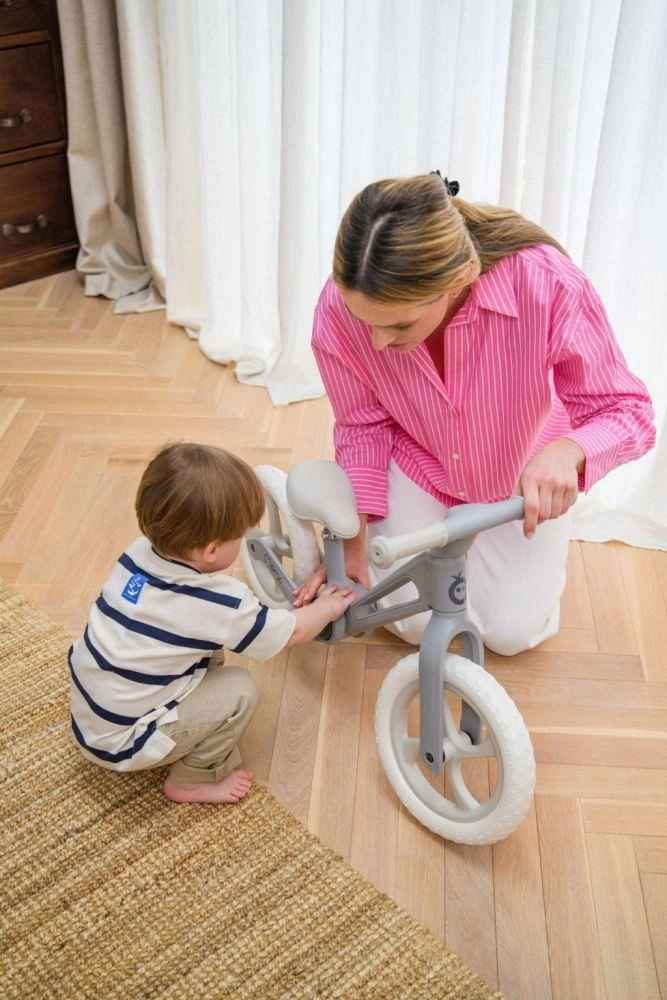 Grazie all’ampio range di regolazione della sella, la balance bike cresce con il bambino. Le ruote in EVA da 12" esenti da manutenzione non si bucano e garantiscono una guida silenziosa e stabile su marciapiedi e in casa. Per maggiore sicurezza non mancano manopole antiscivolo e l’assenza di blocco sterzo per un controllo naturale senza impuntamenti inattesi.
