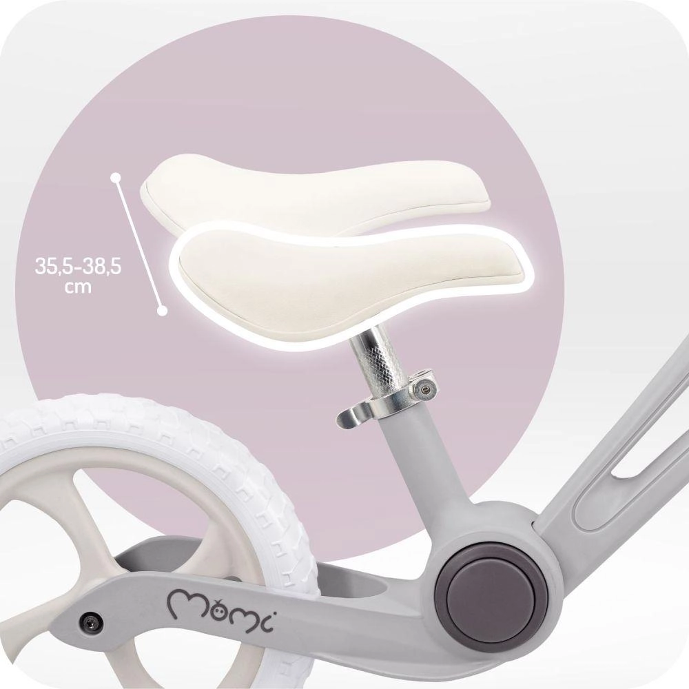 La leggera e pratica balance bike MoMi Noru, con facile chiusura a pulsante, è ideale per i piccoli piloti dai 2 anni. Offre peso ridotto, altezza della sella regolabile senza attrezzi e ruote in EVA da 12" senza camera d'aria per una guida comoda e sicura. Grazie al telaio in nylon e alle manopole antiscivolo, i bambini imparano l’equilibrio con sicurezza in casa e all’aperto.